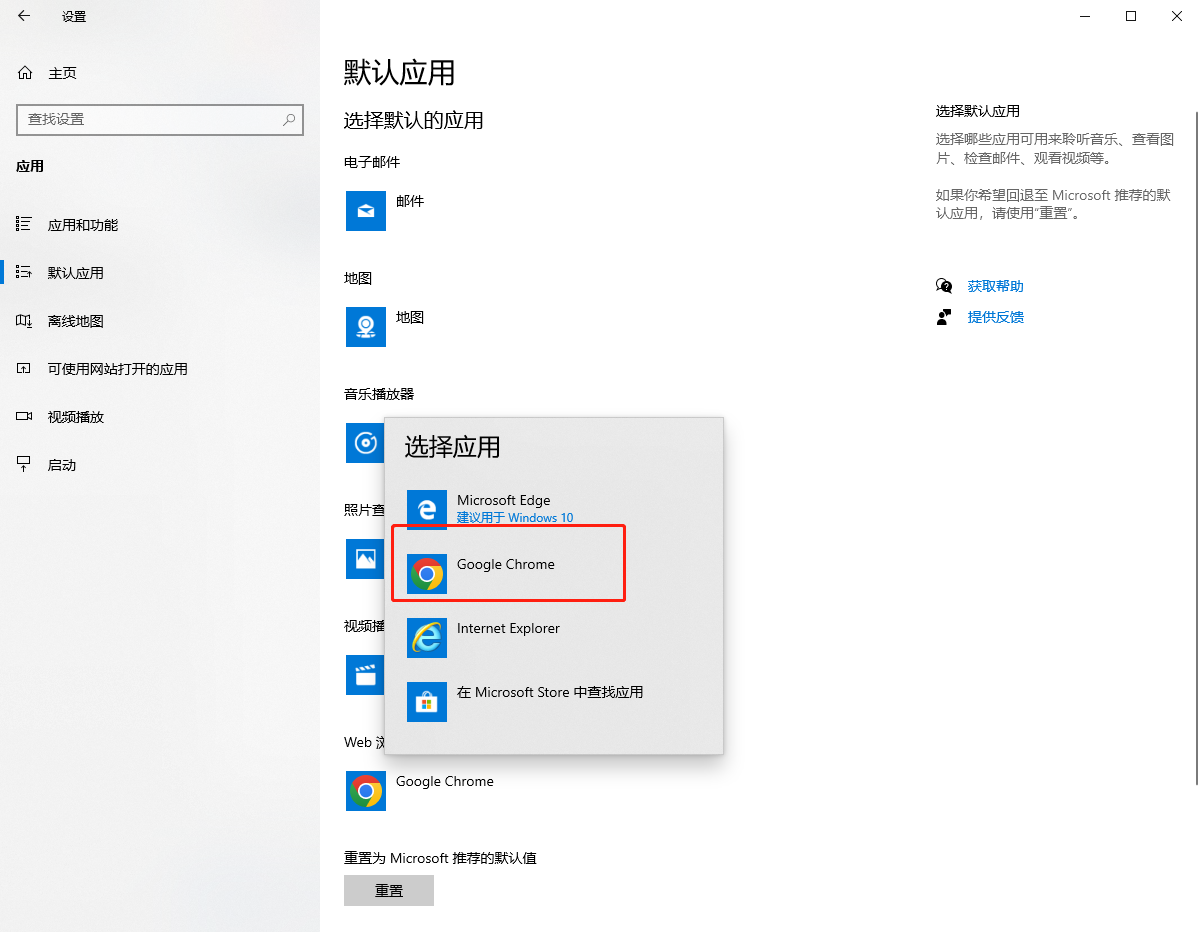 请在配置中将Chrome设置为默认浏览器。
