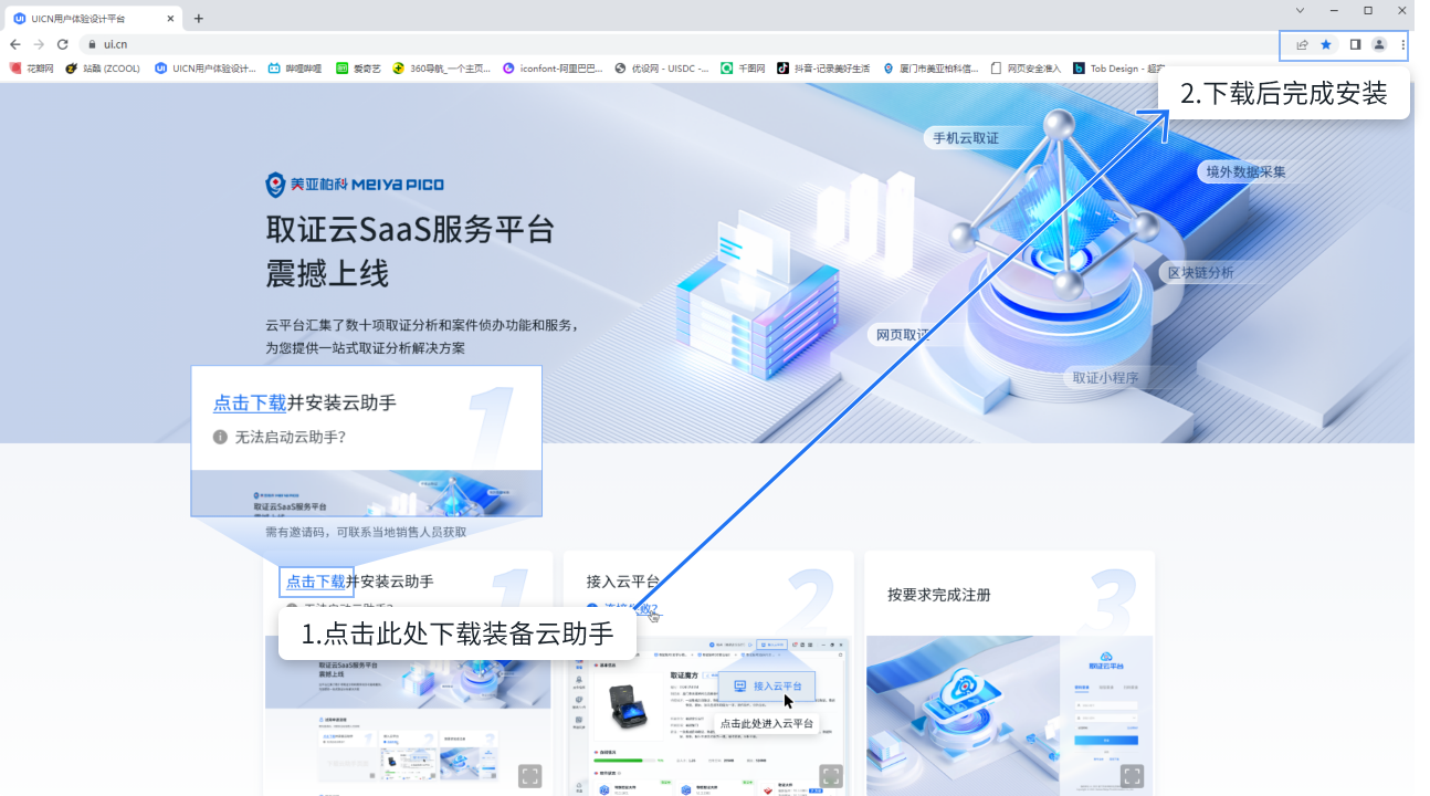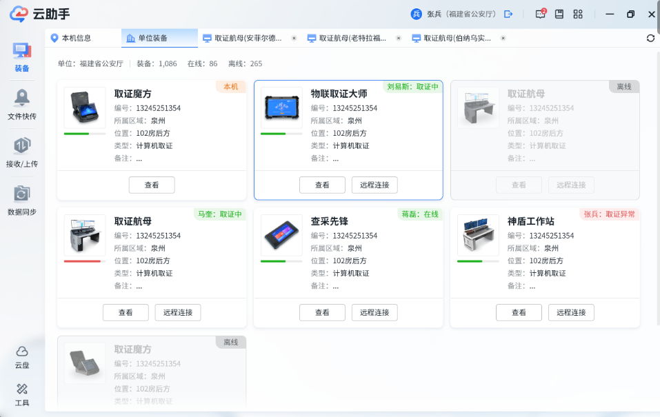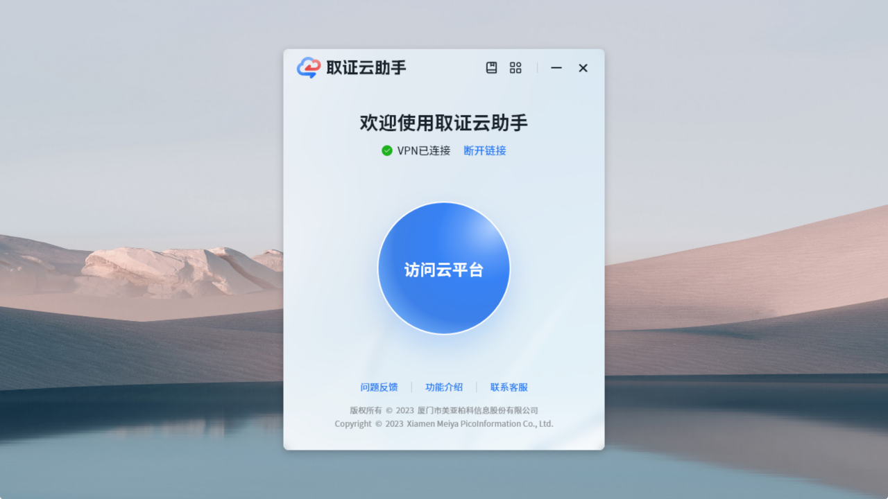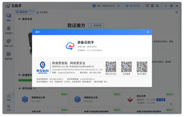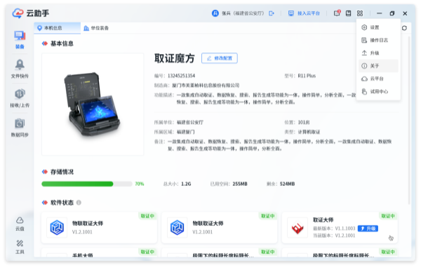 打开取证云助手后自动连接取证云平台